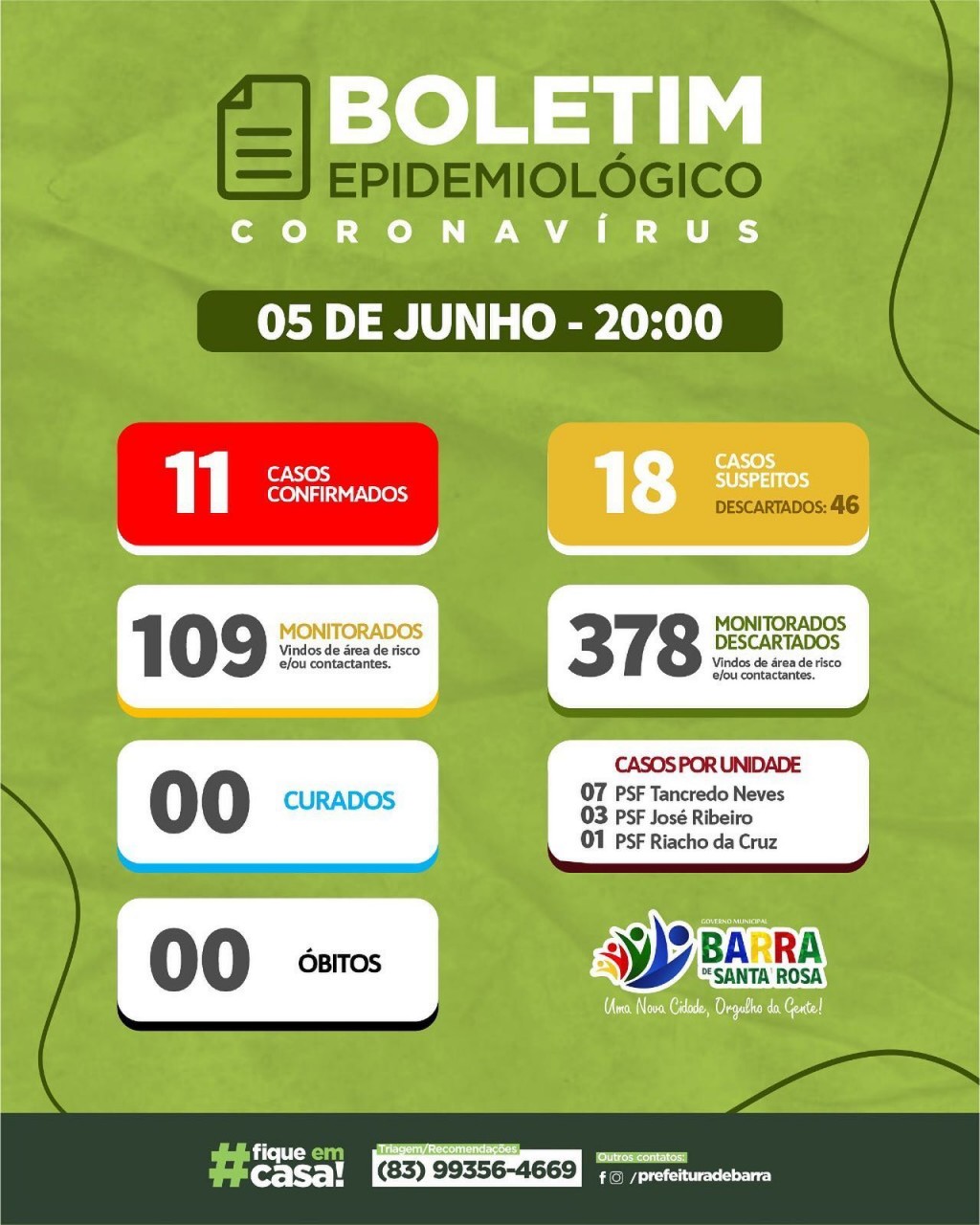 Comunicamos que pelo segundo dia consecutivo não foram registrados novos casos em nossa cidade. Todos os testes realizados nesta sexta-feira (5) foram NEGATIVOS.