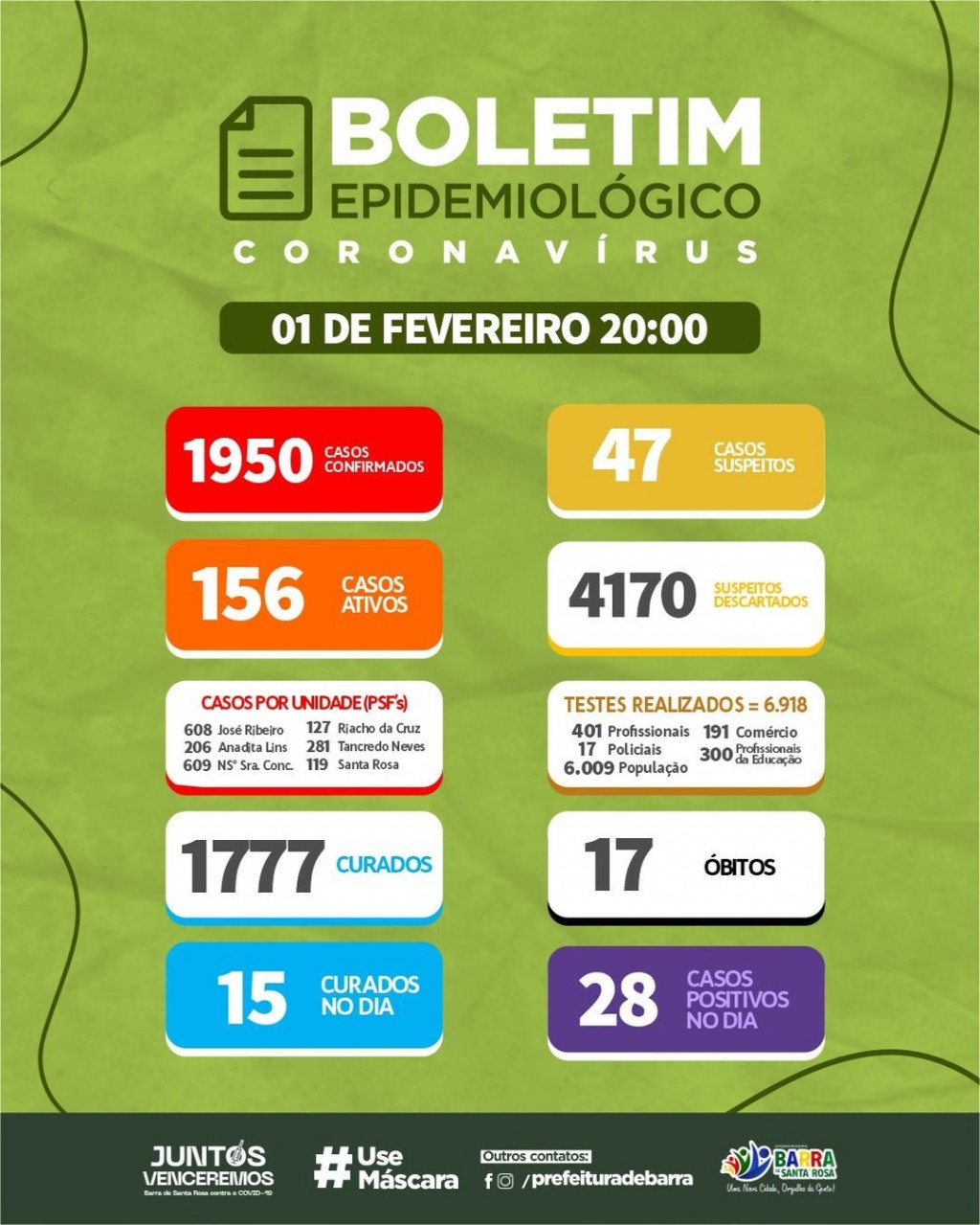 Segue o boletim epidemiológico desta terça-feira (01).