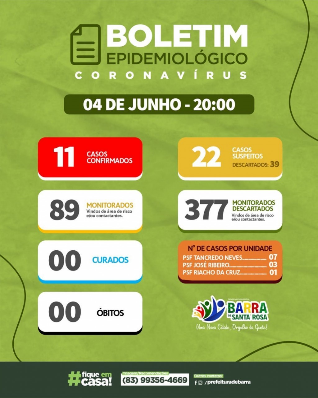Comunicamos que nos testes realizados nesta quinta-feira (4) não registramos NENHUM novo caso em nossa cidade.
