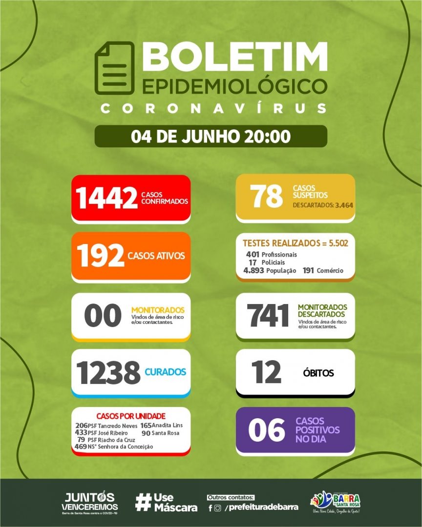Segue o boletim epidemiológico desta sexta-feira (04).
