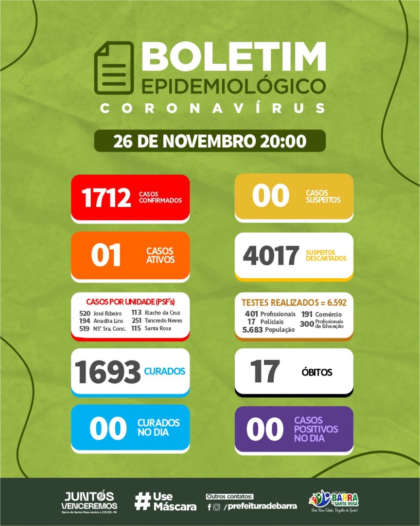 Segue o boletim epidemiológico desta sexta-feira (26).