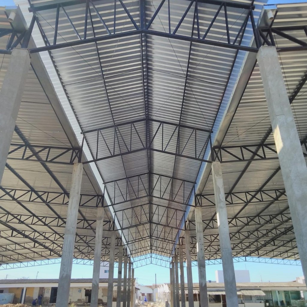 Cobertura do Mercado Público Municipal concluída, as obras estão avançando rapidamente.