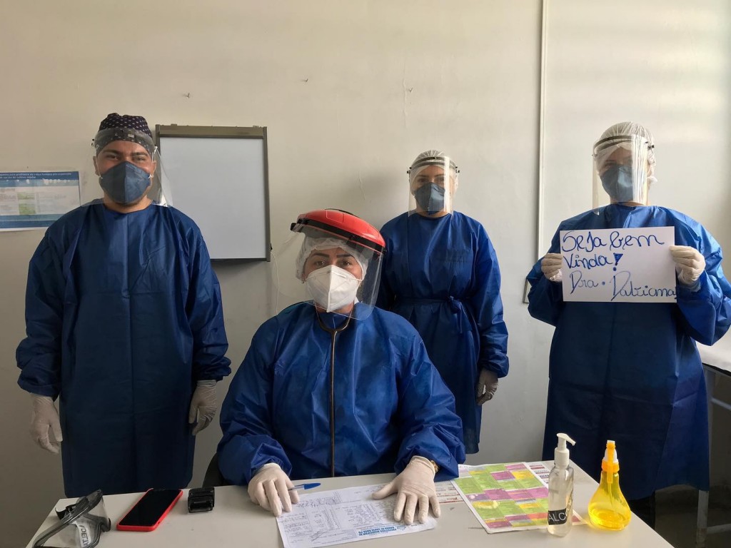 Equipe Nossa Senhora dando boas vindas a Dra. Dabiana que está fortalecendo o time a partir deste domingo. Equipe paramentada, ambulâncias à postos e pronta para receber os pacientes da melhor forma.