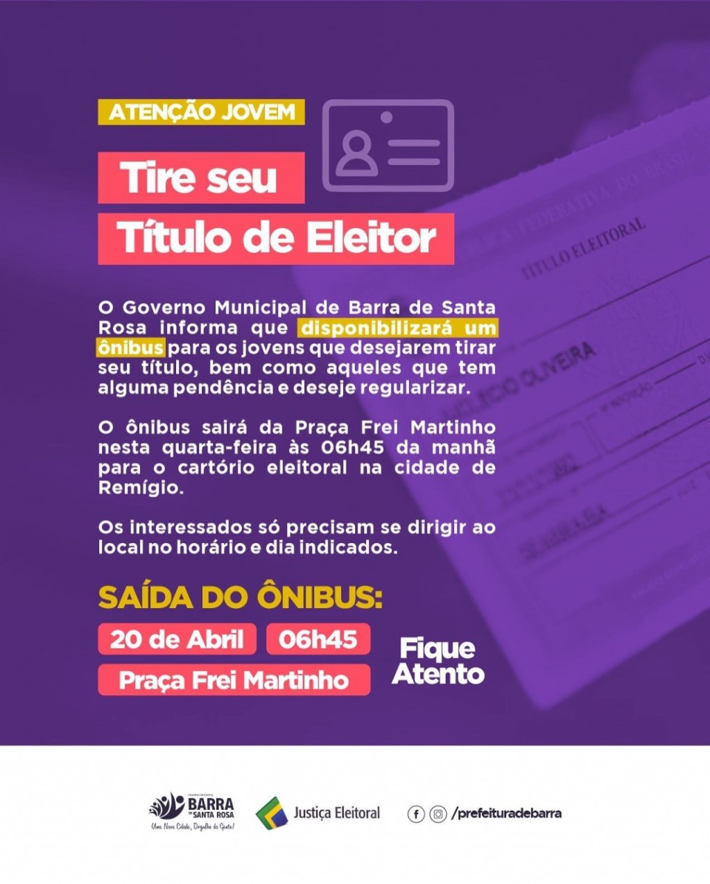 Para mais informações, visite o site do Tribunal Superior Eleitoral.