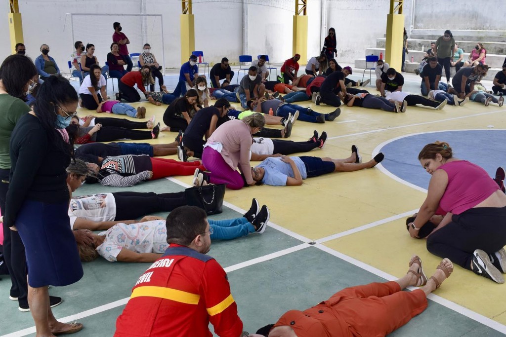 Nesta sexta-feira (22), os Gestores, Professores e Funcionários das Escolas Municipais receberam um curso básico sobre primeiros socorros, através da Secretaria de Educação, Cultura e Desporto, realizado na quadra da Escola do José Cândido Ribeiro. O Bombeiro Wil foi o responsável pela aula.