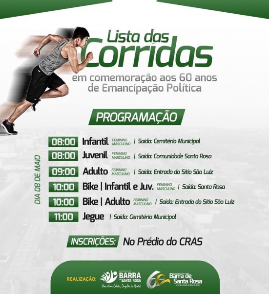 As incrições das competições de todas as Corridas já estão abertas! Estão sendo realizadas no prédio do CRAS.