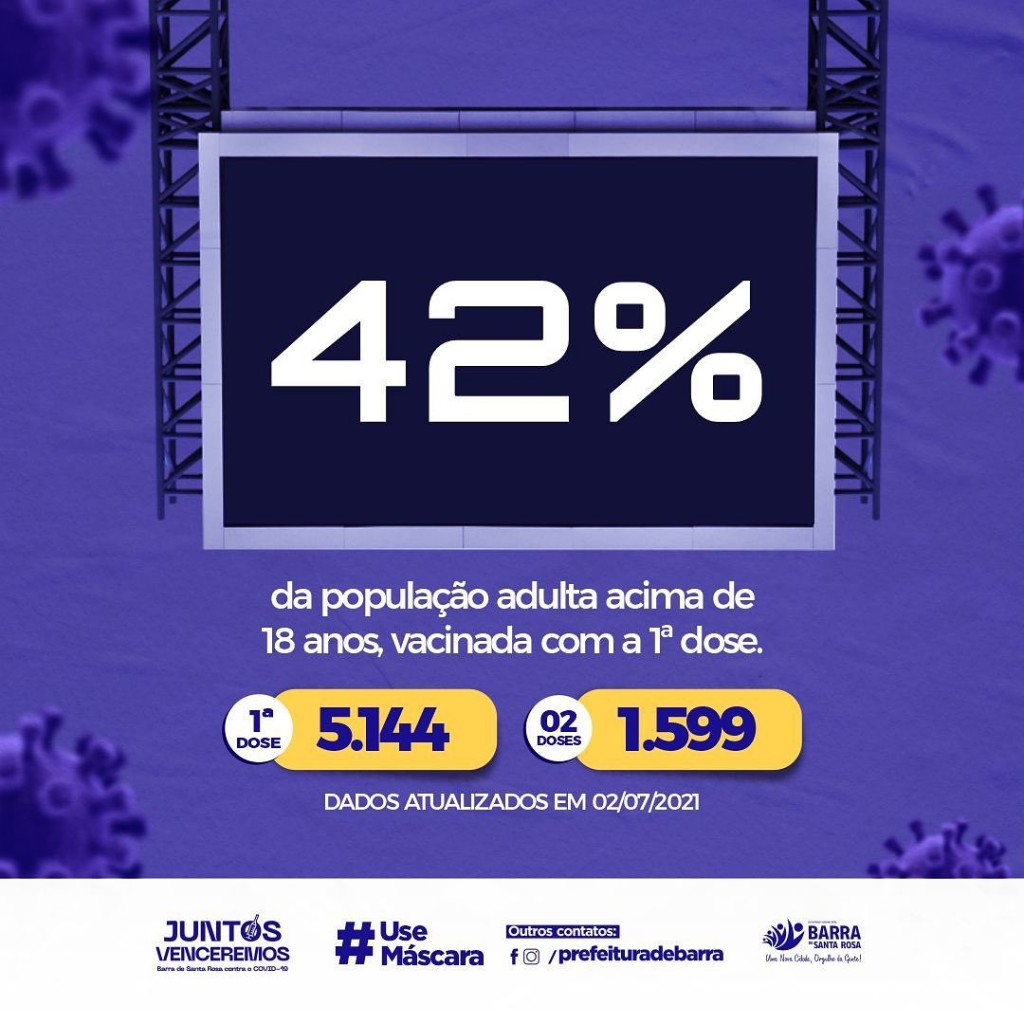 Seguimos avançando na vacinação já chegando na faixa-etária dos 40 anos, com isso estamos próximos de 50% da população adulta vacinada.