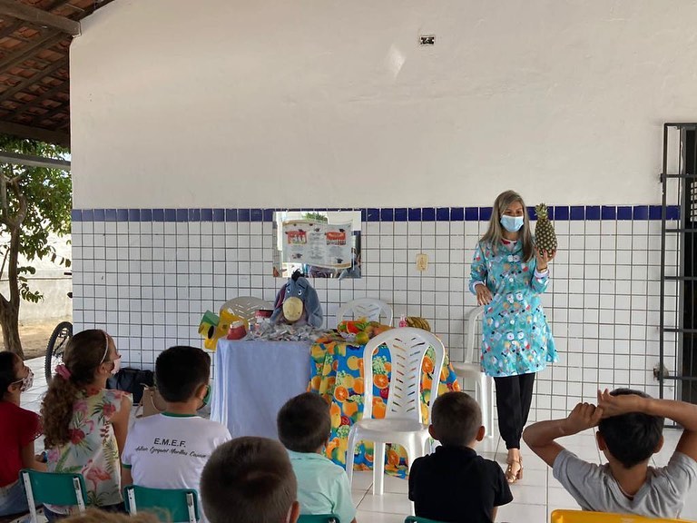 Os nossos pequeninos adoram as ações do Programa Saúde na Escola. Sendo realizadas pela equipe da Atenção Básica e um profissional do NASF, a cada encontro as crianças ficam informadas sobre algumas ações educativas, como escovação, recebendo também os seus kits com escova, pasta, fio dental… informações nutricionais sobre alimentação saudável e entre outros núcleos.