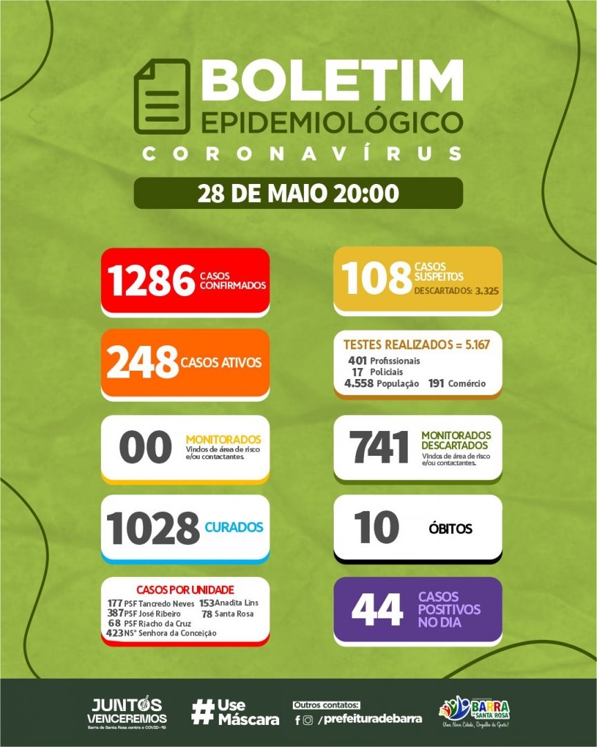 Segue o boletim epidemiológico desta sexta-feira (28).