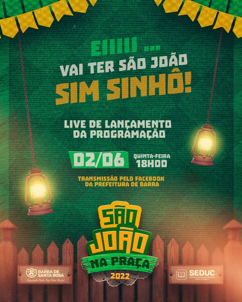 EXPLODIU NOSSO CORAÇÃO | São João na Praça já tem data marcada… e para saber de todos os detalhes dessa festa que nos fez muuuita falta, assistam a live que terá na quinta-feira através da página do nosso Facebook: Prefeitura de Barra.