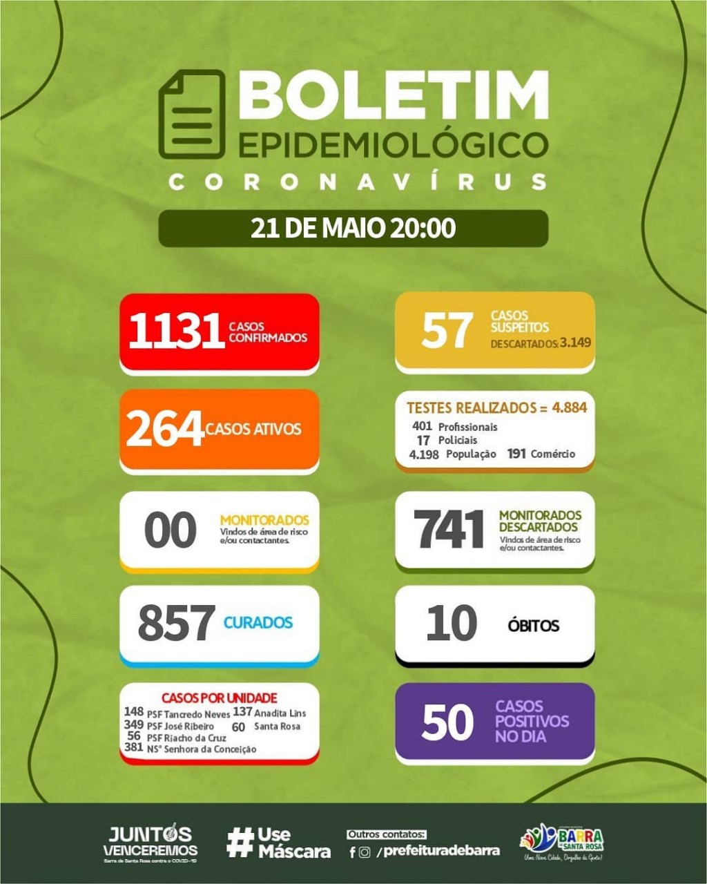 Segue o boletim epidemiológico desta sexta-feira (21).⠀